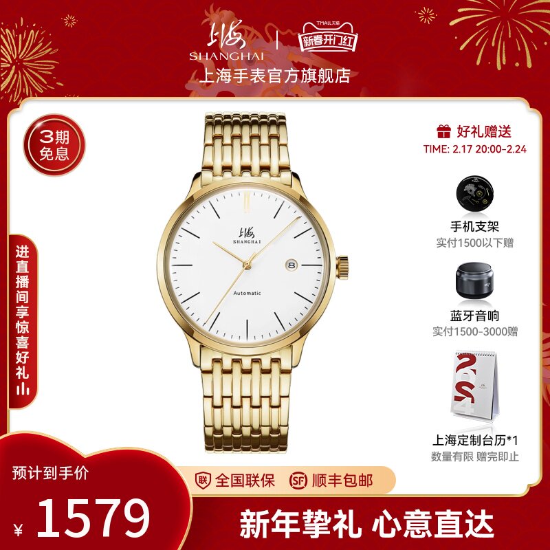 【新年礼物】上海手表日历简约商务国产自动机械情侣腕表962