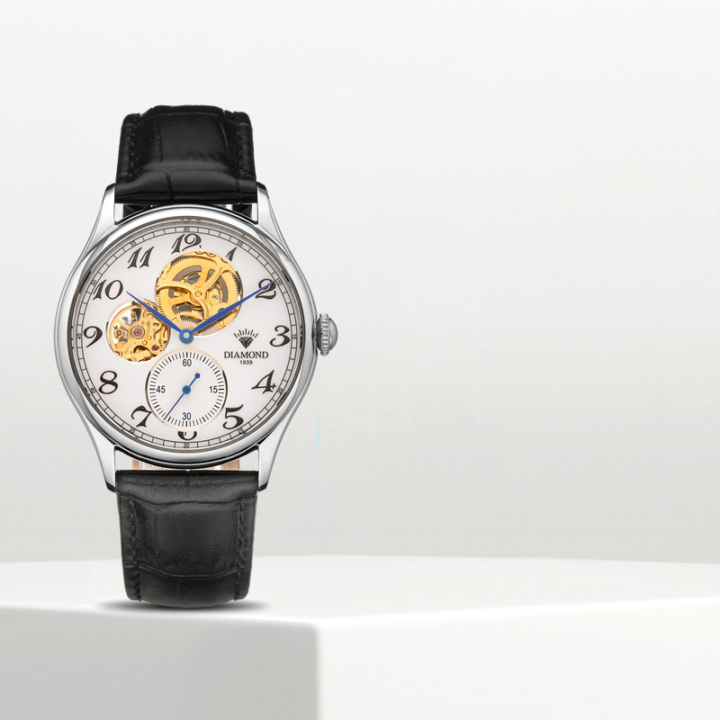 上海钻石牌手表男自动机械表防水夜光透底S102官方正品男士手表
