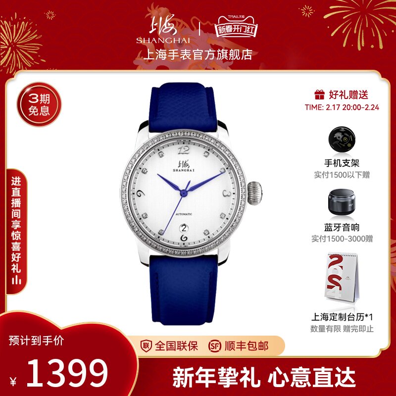 上海手表国民系29毫米镶钻时尚简约气质女士自动机械钢带腕表3007