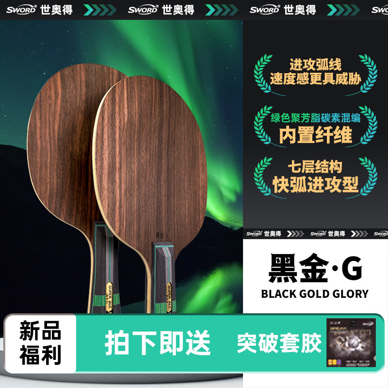 Sword世奥得新款黑金G乒乓球底板七层快弧进攻内置纤维底板