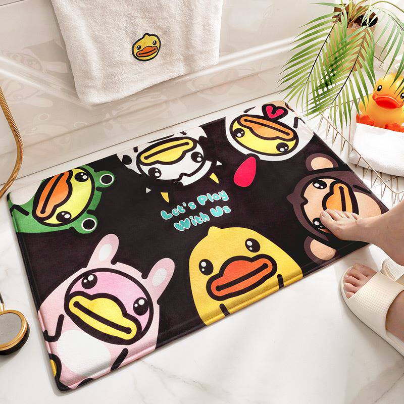 大江卡通小黄鸭浴室吸水地垫卡通地毯门垫家用脚垫底部防滑法莱绒