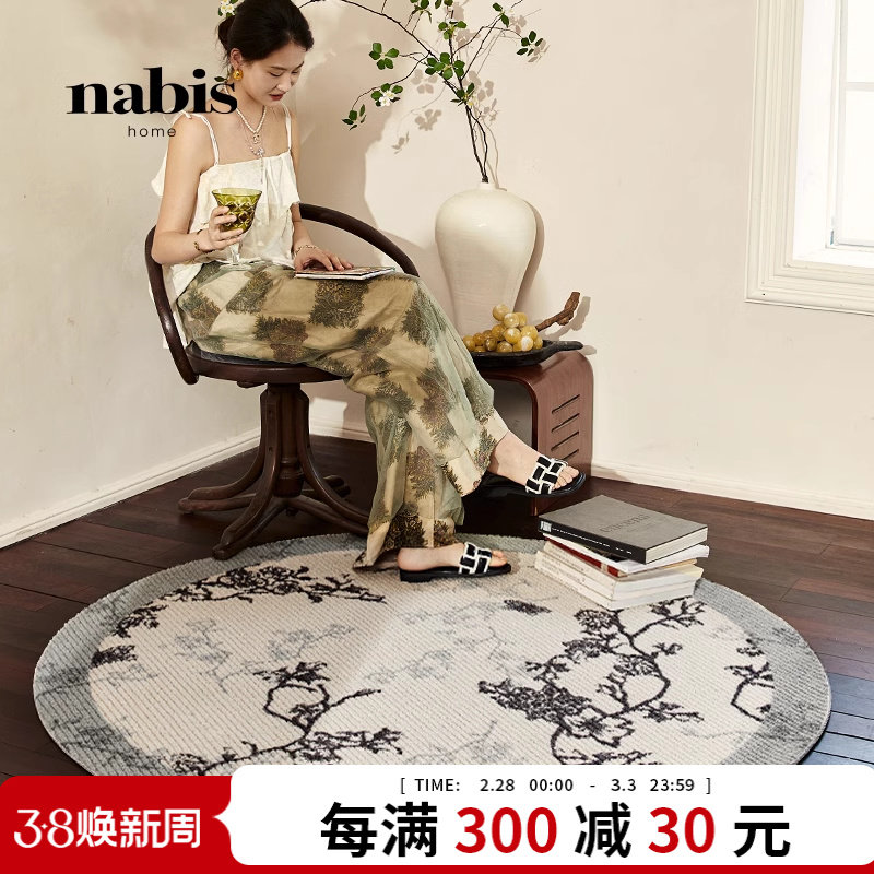 蜡笔派梅花圆形羊毛地毯轻奢高级感东方时尚书房镜前毯卧室床边毯