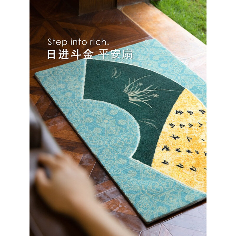 地毯“日进斗金”东方兰花平安扇新中式床边毯客厅入户门垫