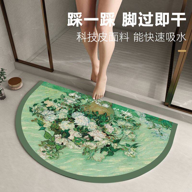 卫生间吸水垫子浴室弧形地垫淋浴房门口防滑速干扇形脚垫进门地毯