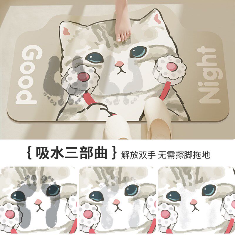 萌萌小猫 软矽藻泥吸水地垫化妆室门口浴室防滑脚垫速干耐脏地毯