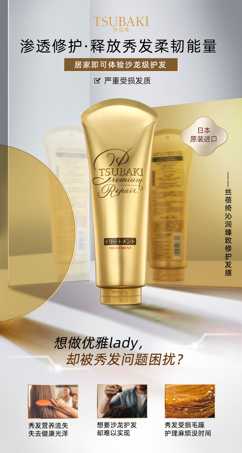 日本tsubaki丝蓓绮0秒金色发膜保湿滋养渗透修护干枯糙免蒸护发素