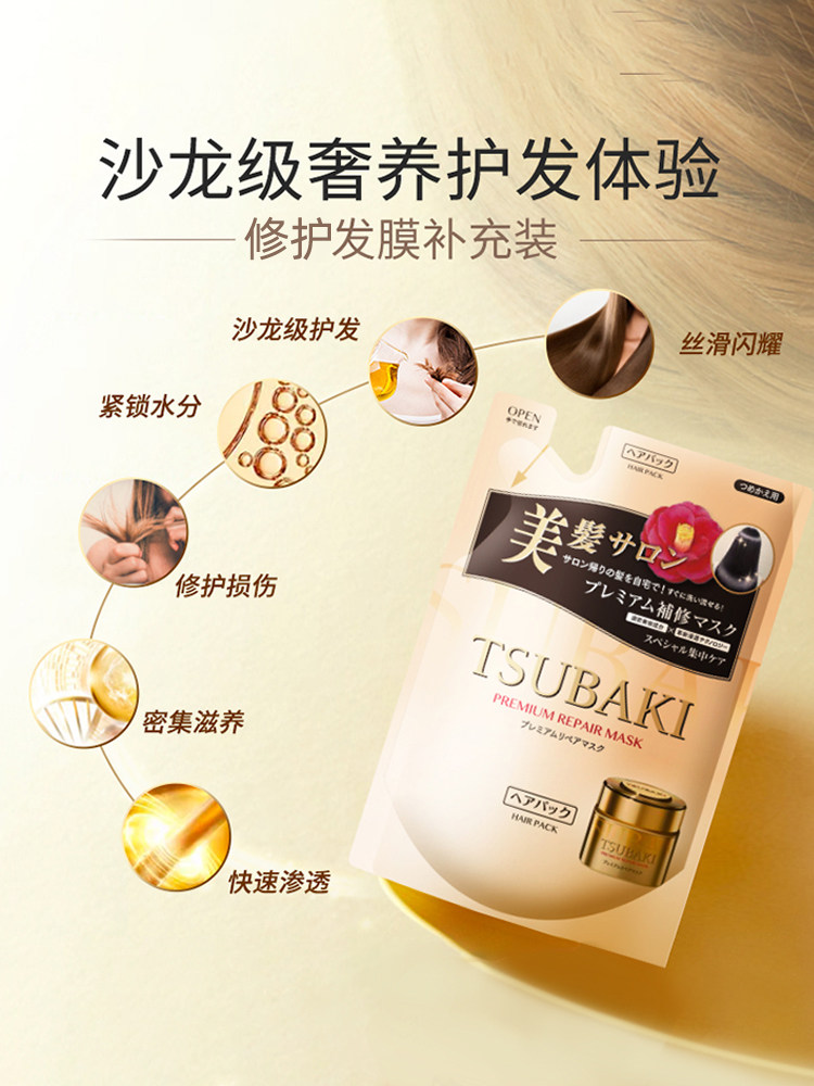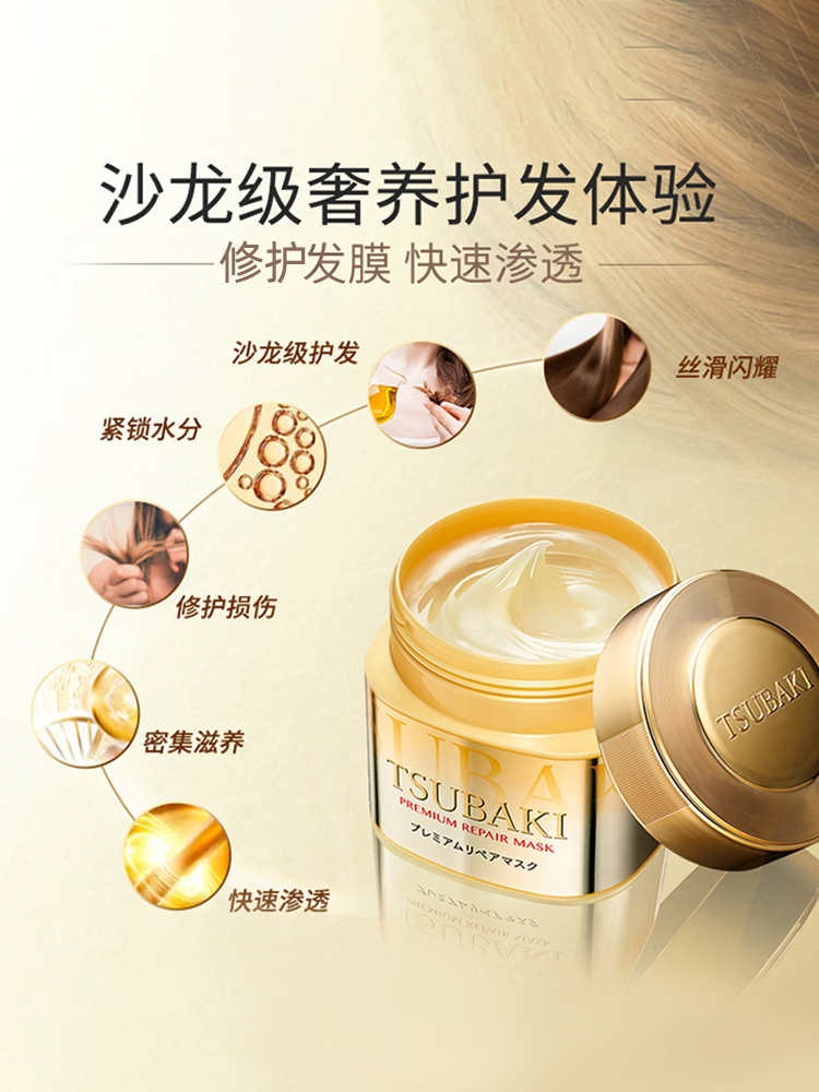 丝蓓绮TSUBAKI臻护0秒金色修护头发护理护发素倒膜180g发膜日本