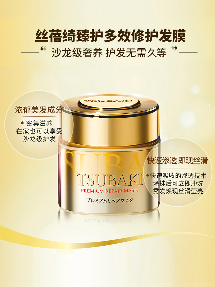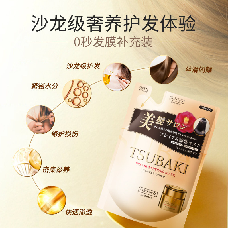 日本tsubaki丝蓓绮0秒金色发膜倒膜金装护发素修护干枯毛躁护理