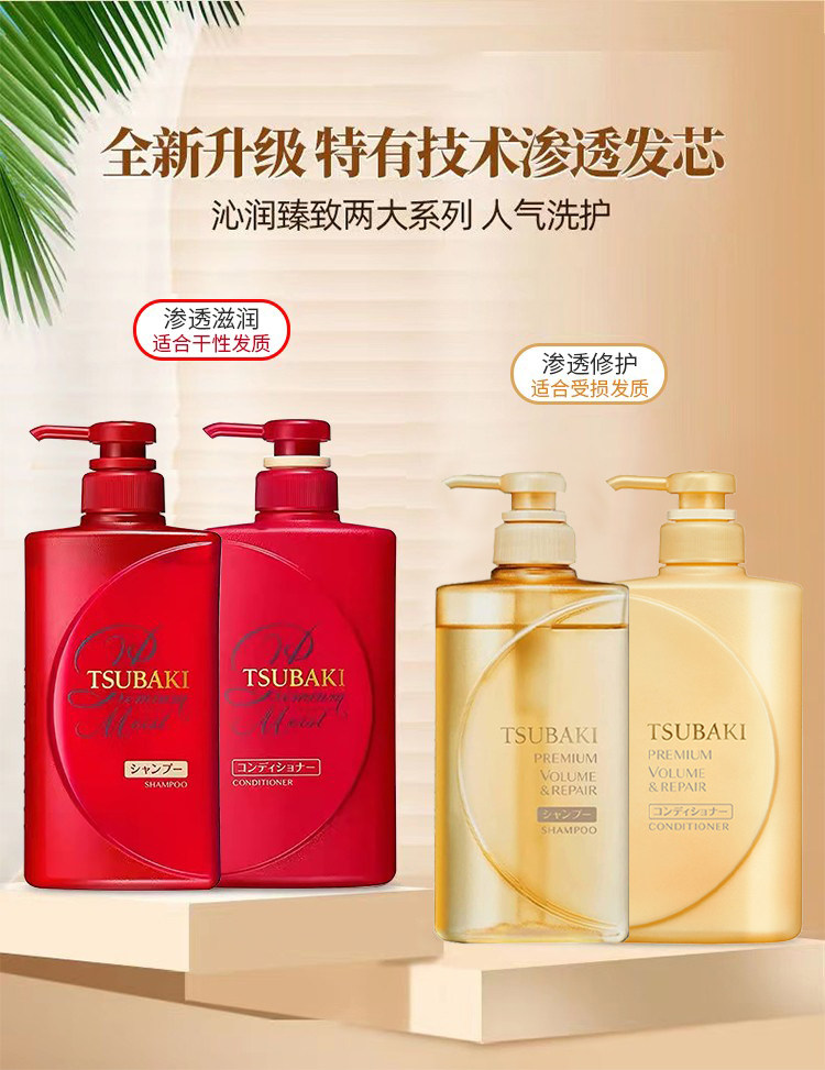 日本TSUBAKI丝蓓绮金椿洗发水沁润臻致修护滋润490ml护发素进口