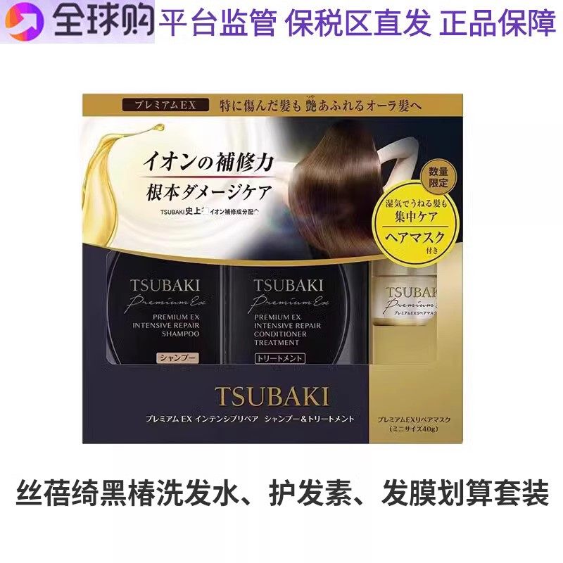 保税 日本Tsubaki丝蓓绮黑椿洗发水护发素套盒490ml*2瓶+40g发膜