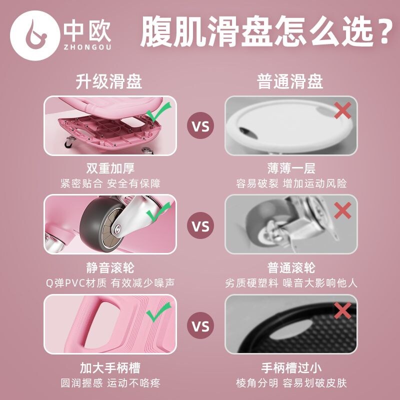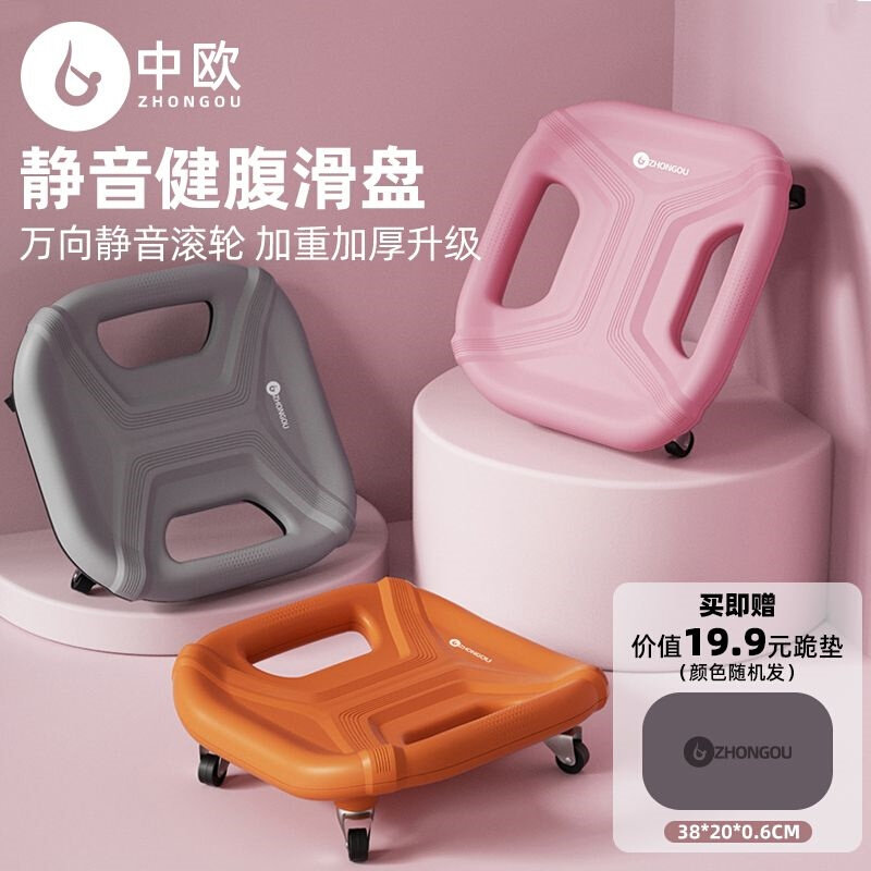 中欧静音腹肌轮健腹滑盘男女士健身滚轮瘦肚卷腹家用四轮运动器材