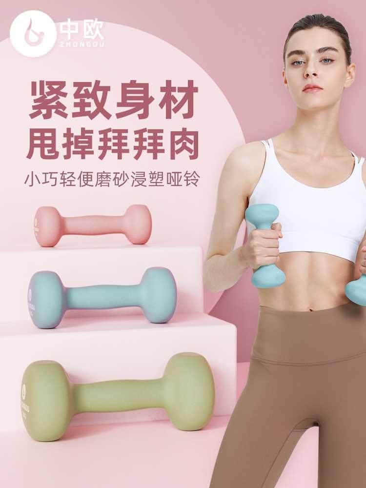 中欧浸塑哑铃男士健身家用女士初学者瑜伽锻炼器材练臂肌亚铃一对