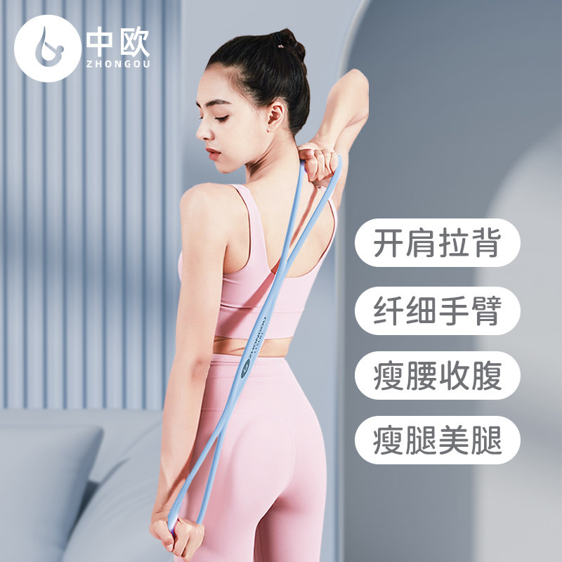 中欧8字拉力器家用健身瑜伽器材弹力绳背部训练开肩颈美背拉伸带