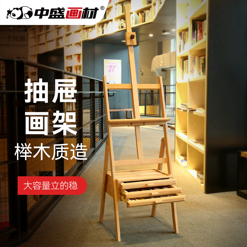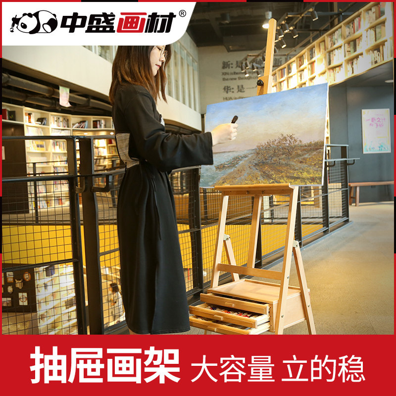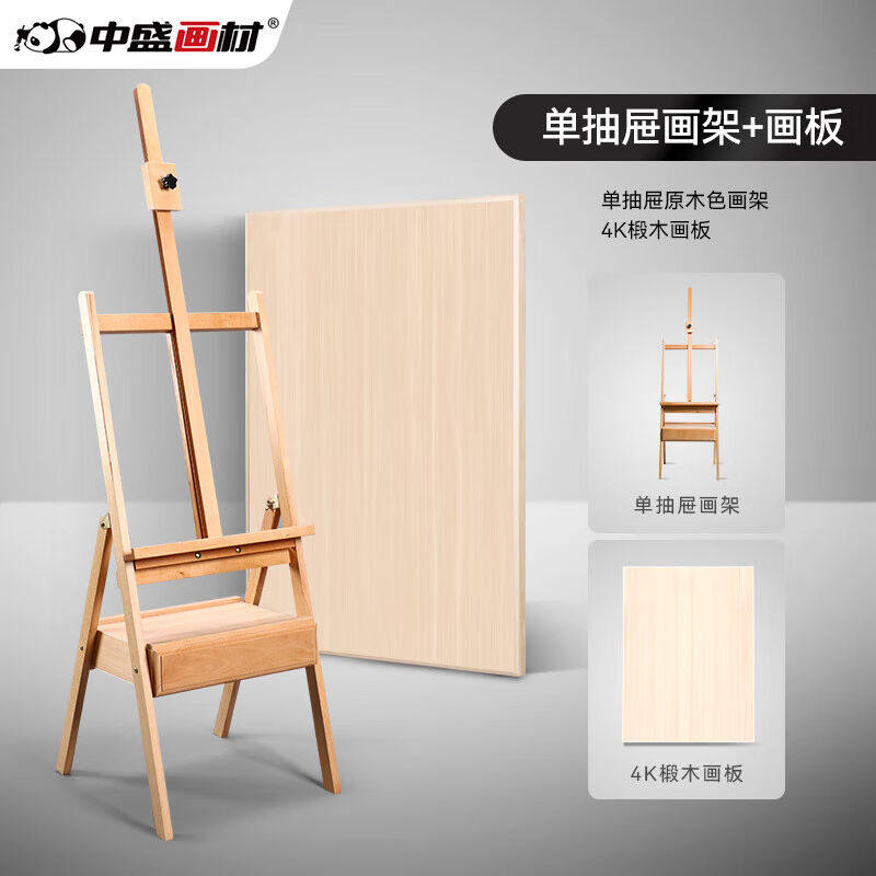 中盛画材 抽屉木质画板画架素描写生套装成人儿童油画架支架式
