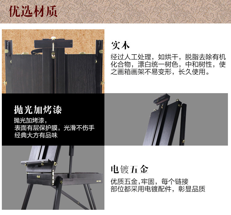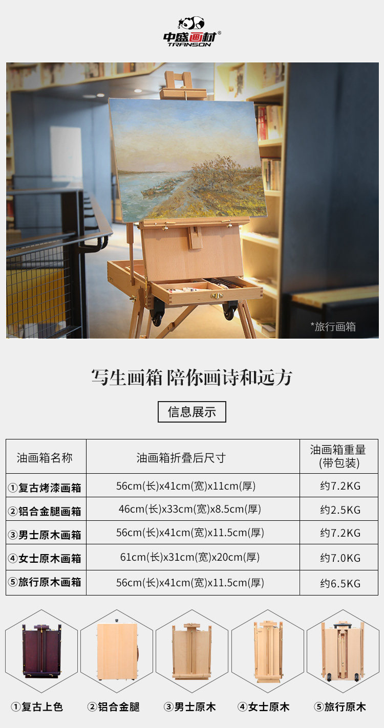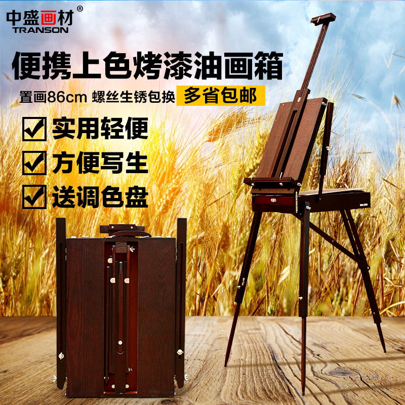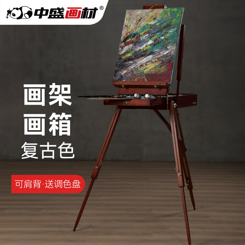 中盛画材 油画素描写生画箱木制油画架实木便携油画箱油画架子