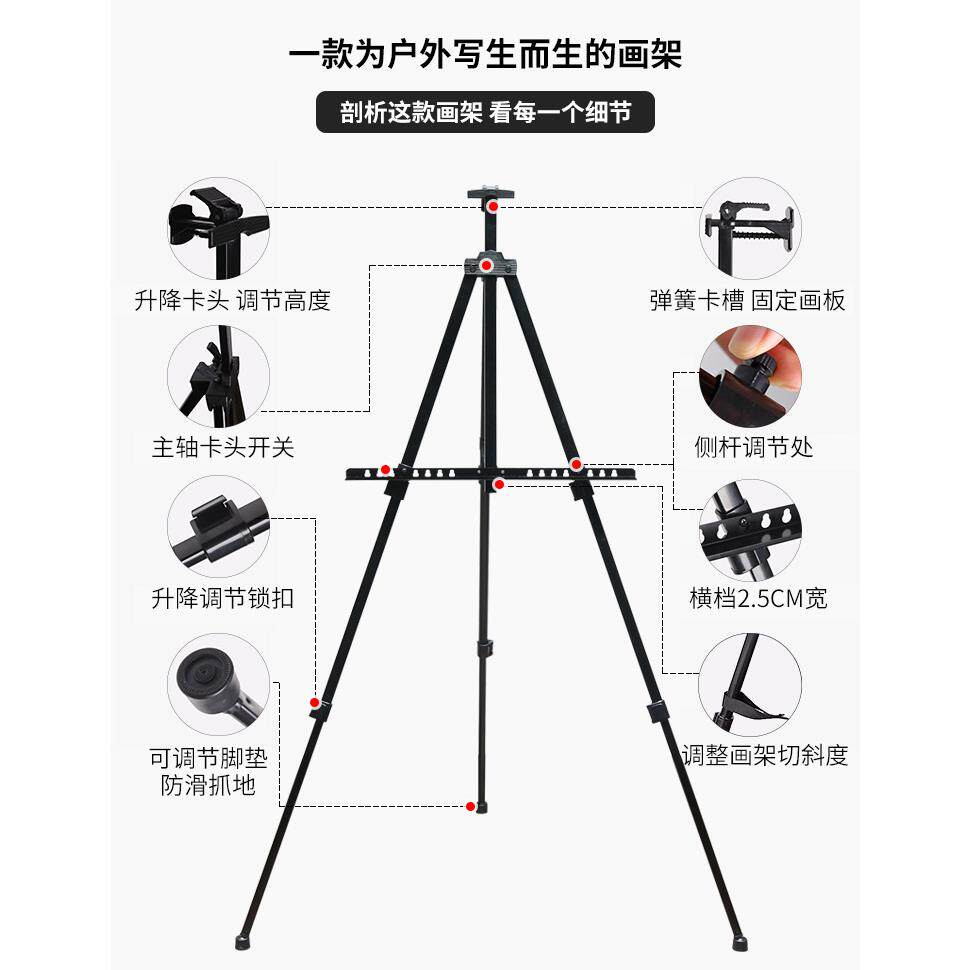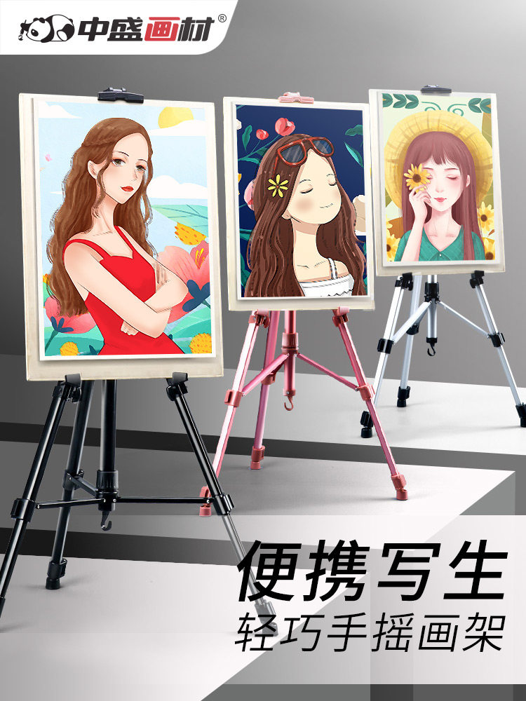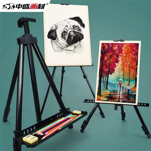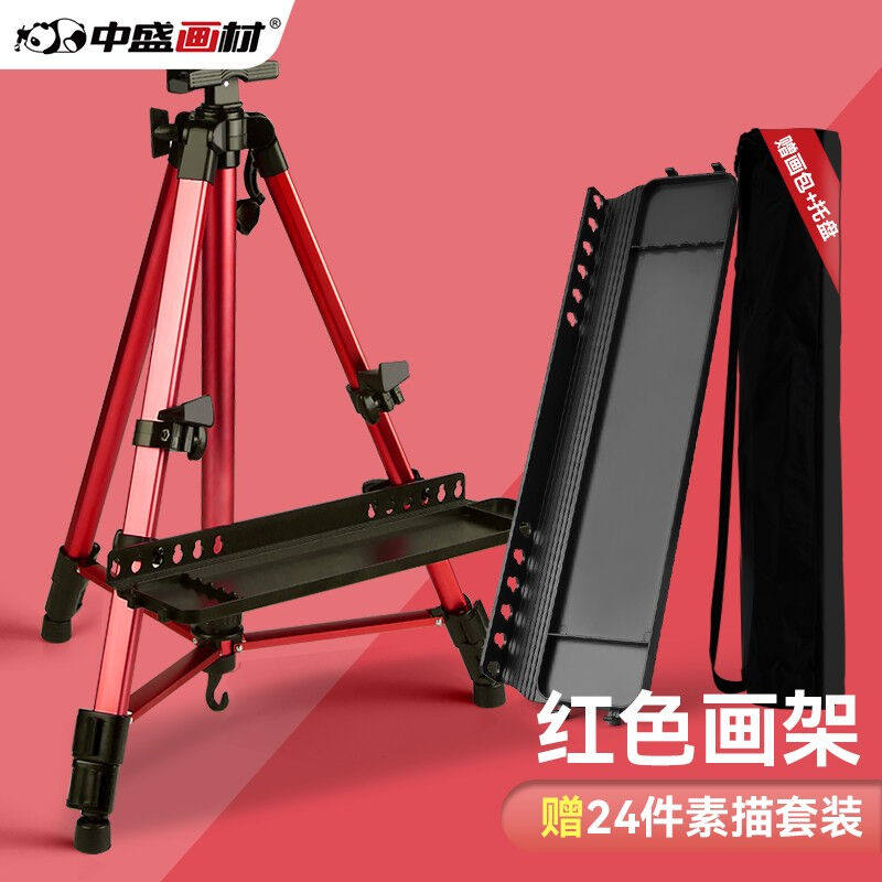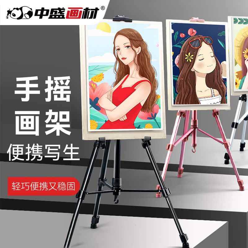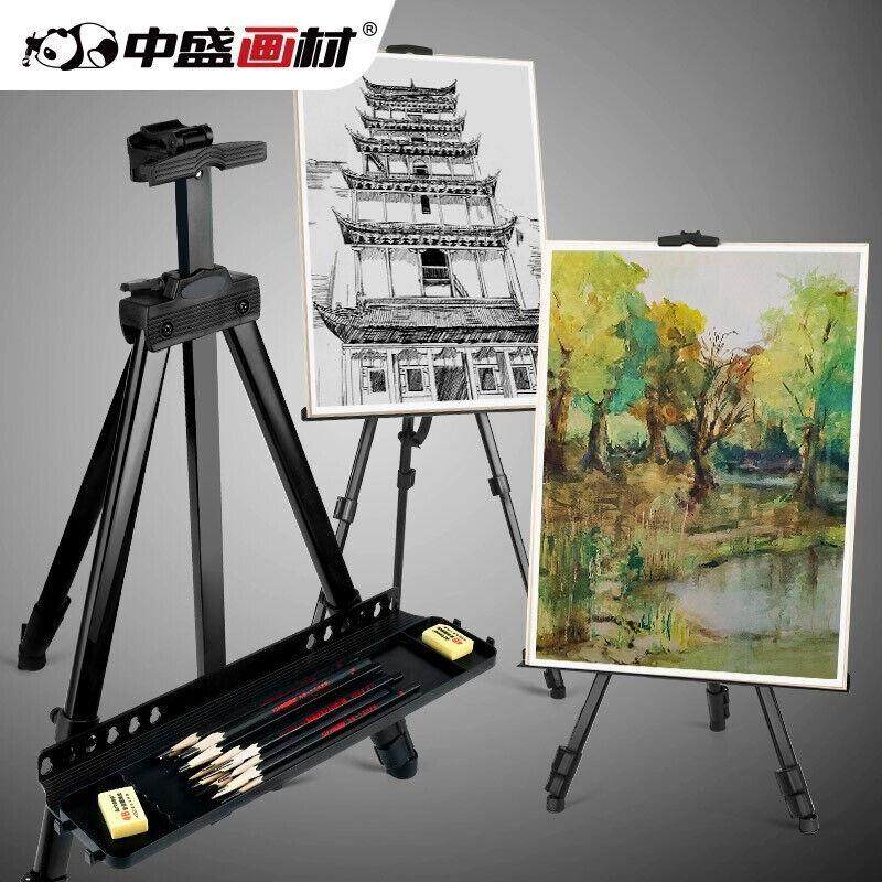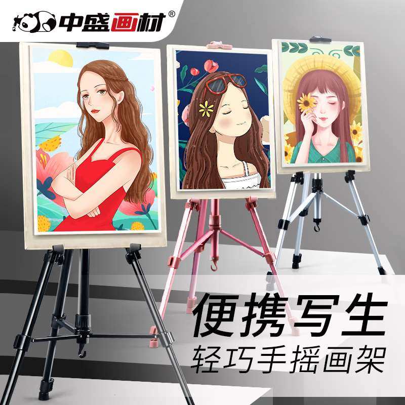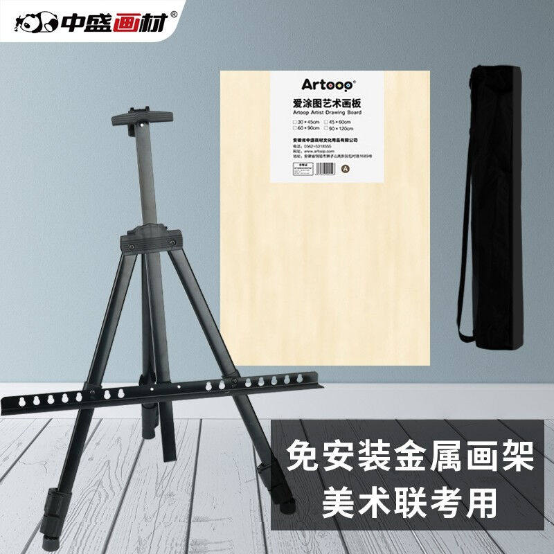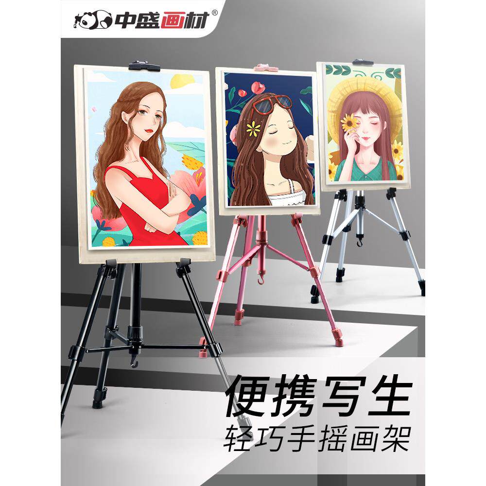中盛画材金属画架画板套装便携式写生架子艺术联考用折叠画架4K画