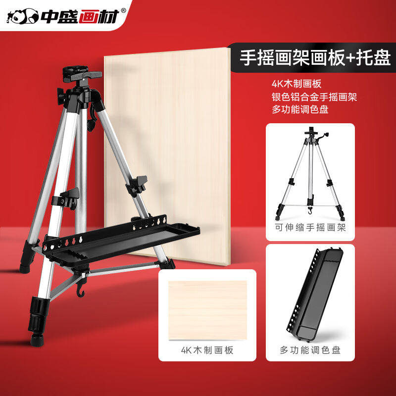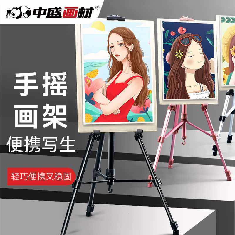 中盛画材手摇铝合金画架金属折叠画架素描画架4k画板套装便携式写