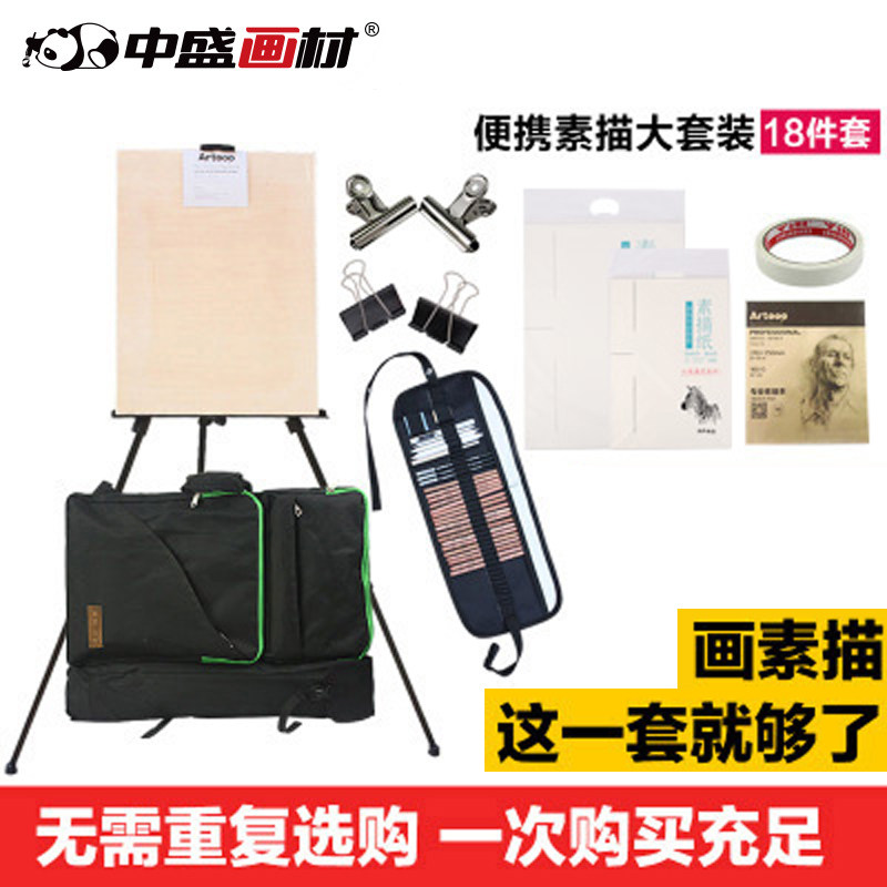 经济18件初学素描工具套装 画架+画板+素描纸+速写本美术用品