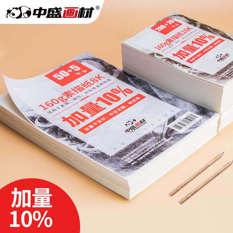 中盛画材素描纸8k水彩纸水粉纸8开4k速写纸a4画纸水彩画纸彩铅纸