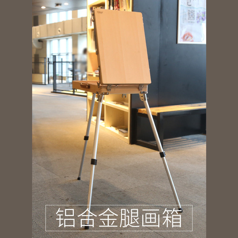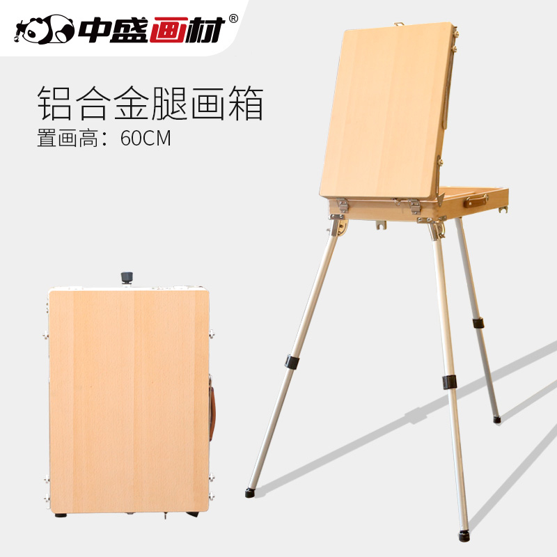 中盛画材 便携式木制手提铝合金腿油画箱油画架写生画架送调色板