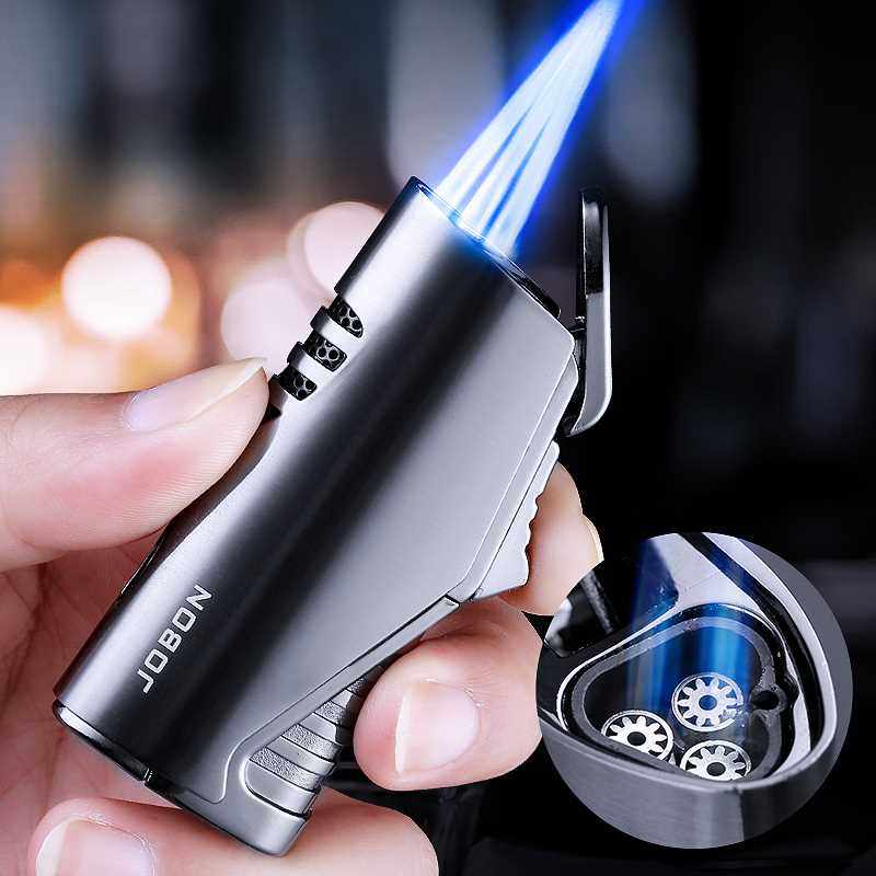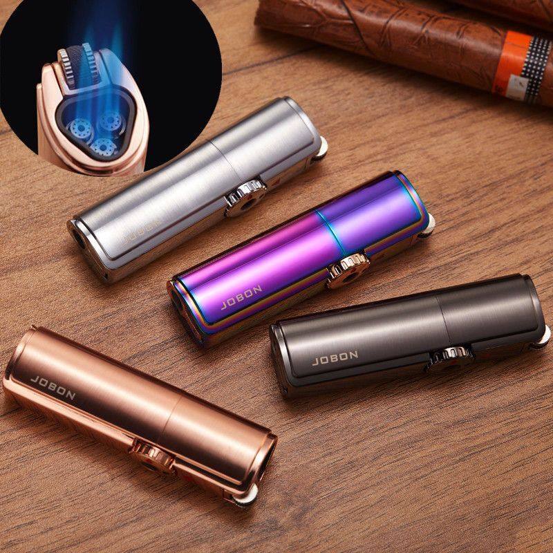 充气打火机JOBON中邦创意防风三头直冲蓝焰砂轮式个性气体雪茄潮