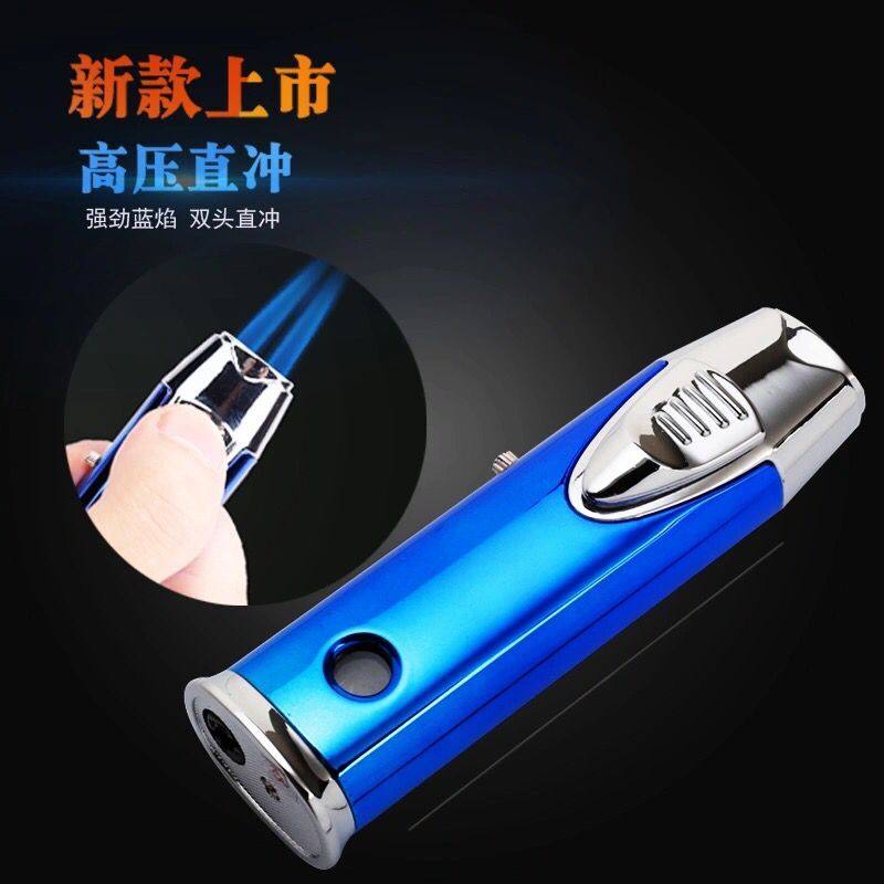 打火机直冲防风雪茄充气创意三中邦个性蓝焰砂轮S头潮式器点烟气