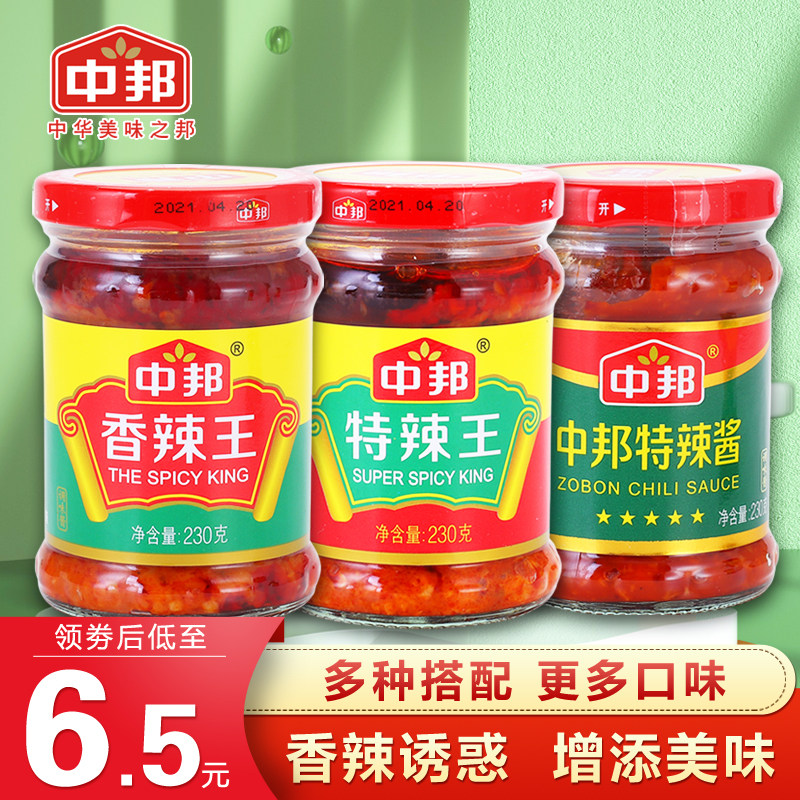 中邦辣椒酱特辣王00g香辣王组合火锅麻辣烫辣椒酱蘸料酱蒜蓉开胃