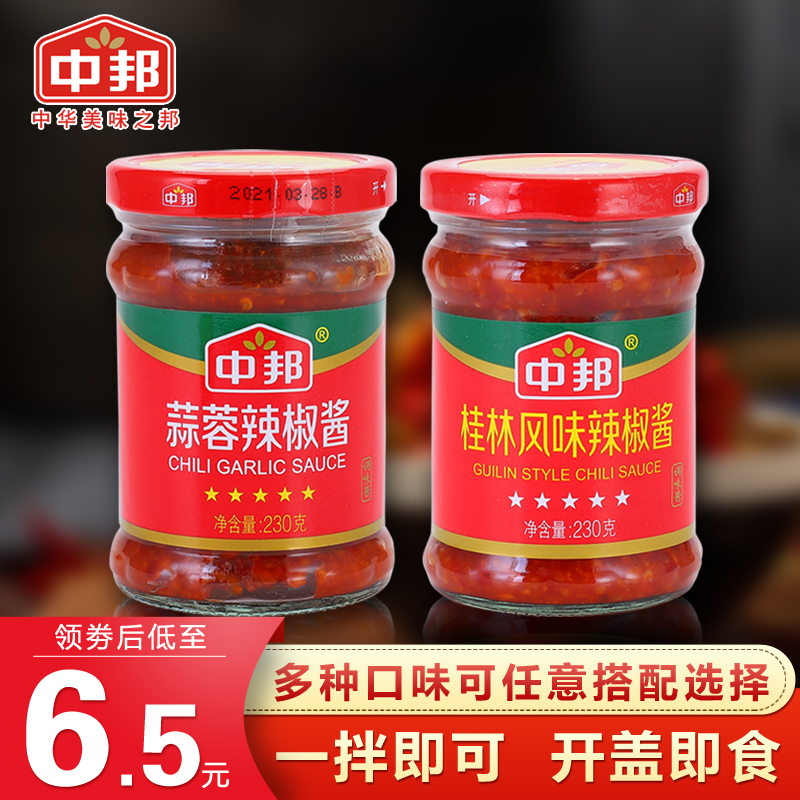 中邦特辣酱香辣酱230g蒜蓉桂林辣椒酱拌面酱拌饭酱蘸酱多规格整箱
