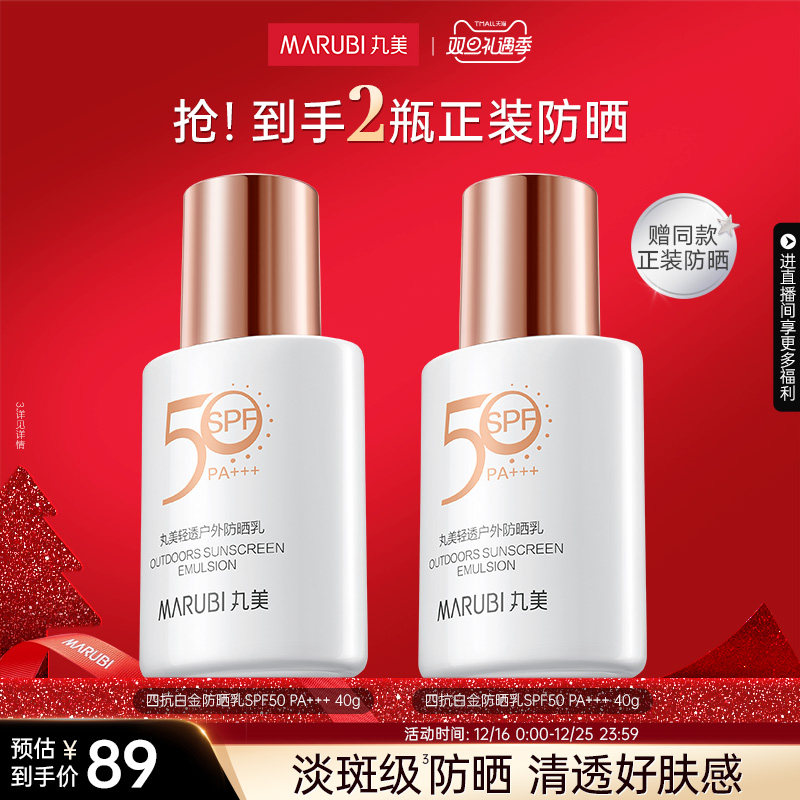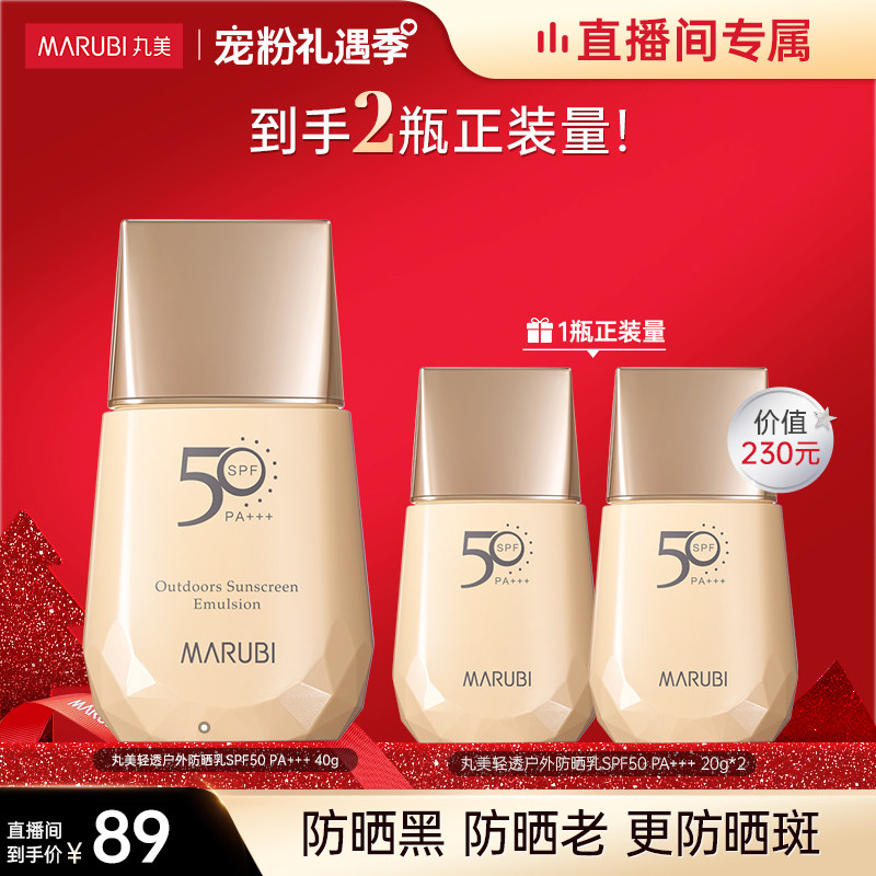 2支丸美防晒霜50倍中样 轻透户外防晒乳20g防水汗紫外线清爽持久