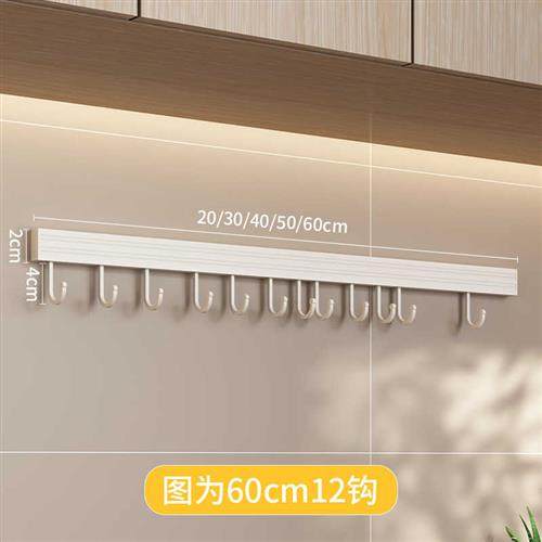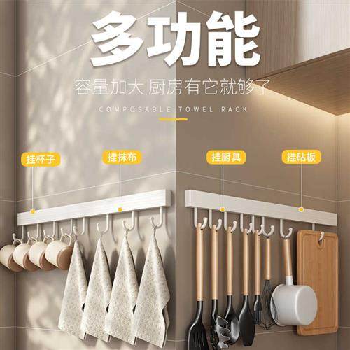丹乐白色厨房挂钩架免打孔挂杆壁挂太空铝置物架厨具挂勺子排钩