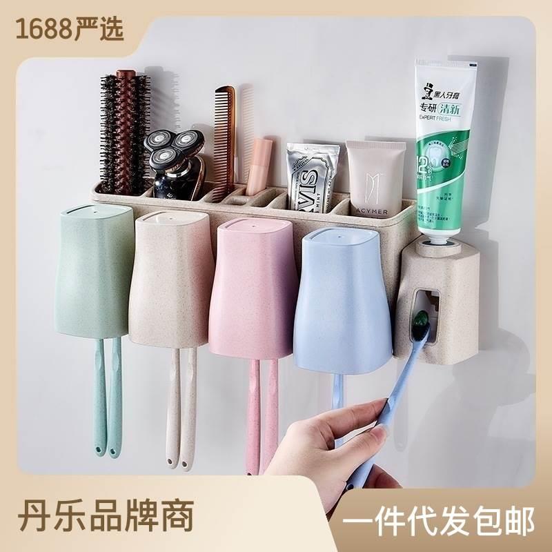 丹乐全自动挤牙膏神器挤压器漱口杯套装吸盘塑料免打孔牙刷置物架