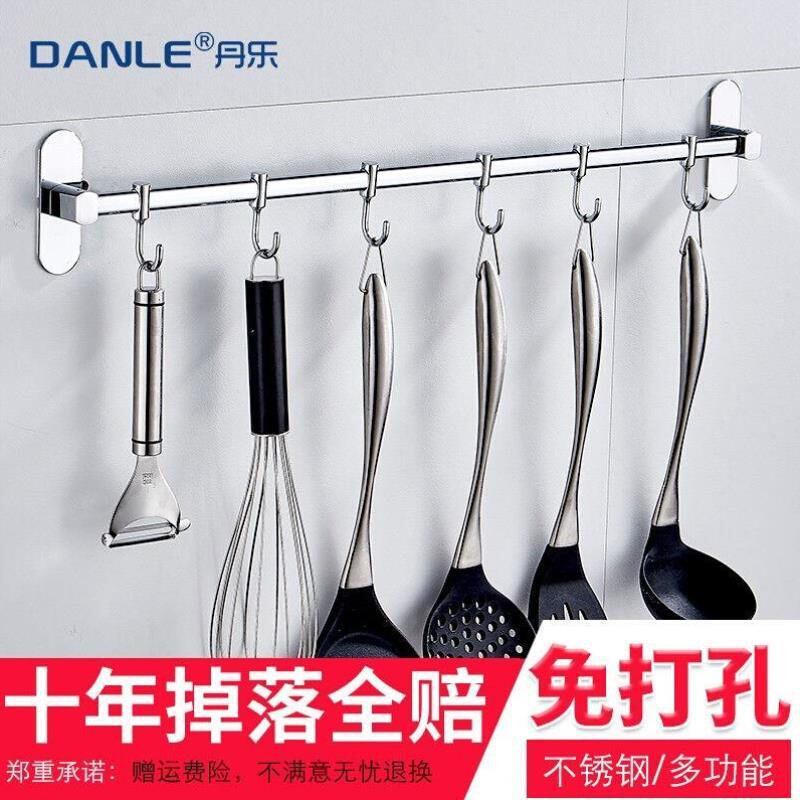 丹乐不锈钢厨房挂钩架免打孔挂杆排钩锅铲挂架置物架厨具收纳壁挂