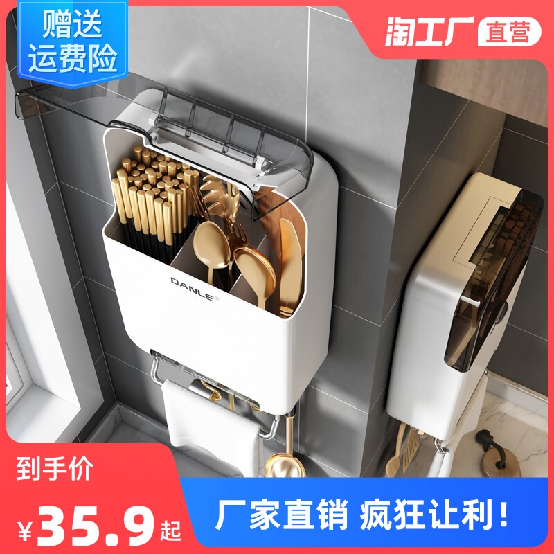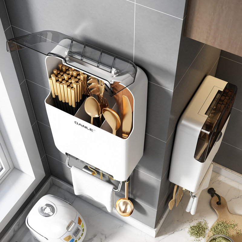 2023丹乐筷子篓置物架家用壁挂式筷筒筷笼勺子防尘带盖收纳盒厨房
