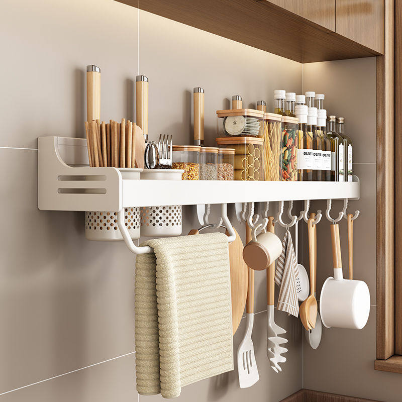 丹乐厨房置物架免打孔壁挂式刀架调味料白色家用多功能收纳架墙上