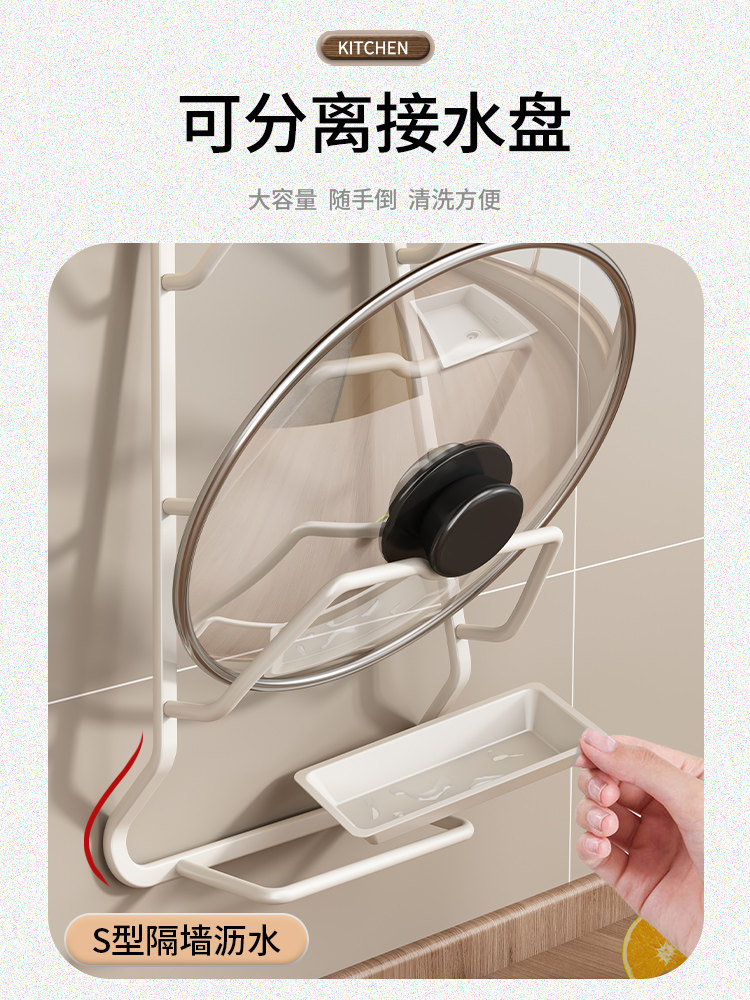 丹乐免打孔锅盖架壁挂式刀架厨房盖子贴片式置物架菜刀收纳神器
