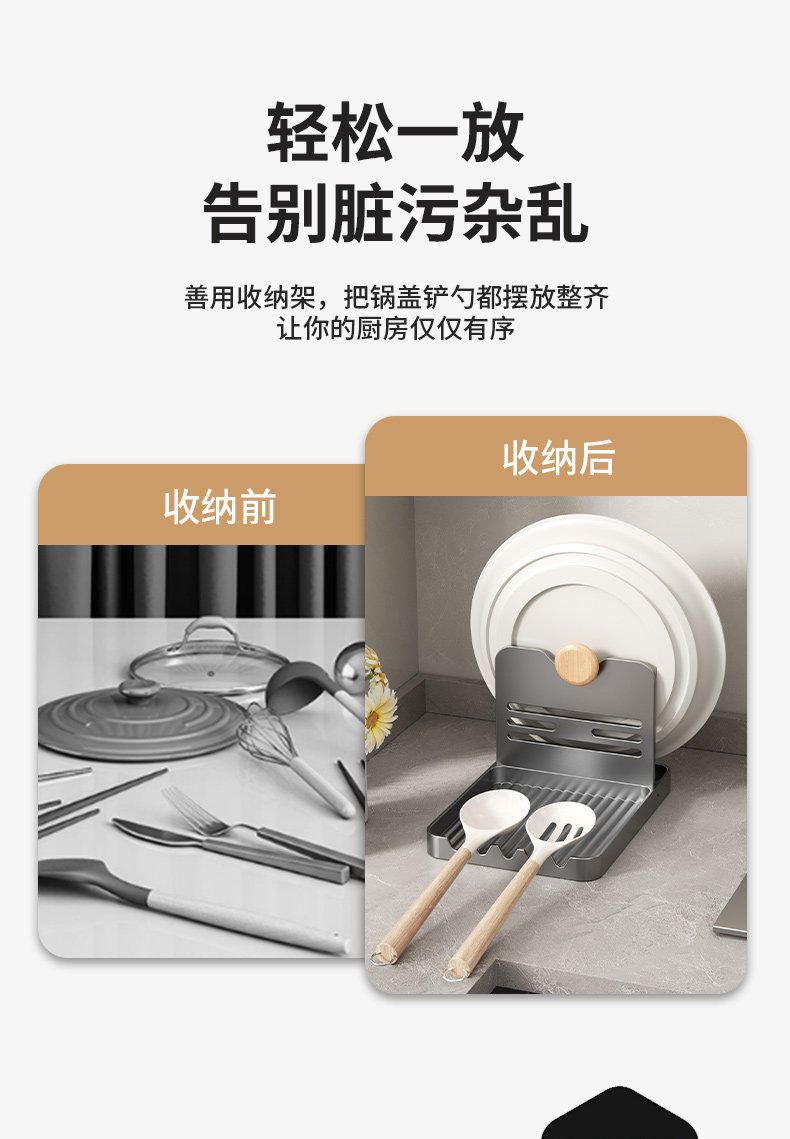 丹乐厨房锅盖架锅铲托置物架菜板多功能家用台面坐式砧板放置架子