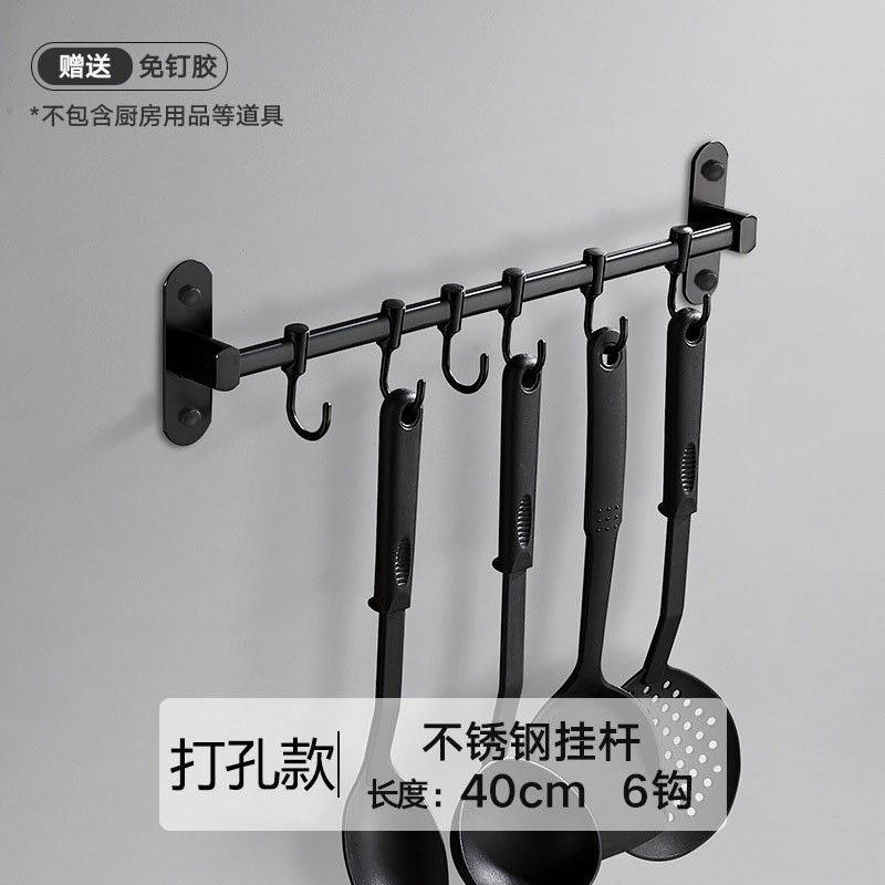 丹乐黑色304不锈钢打孔款厨房挂钩厨房置物架壁挂收纳架挂杆浴室