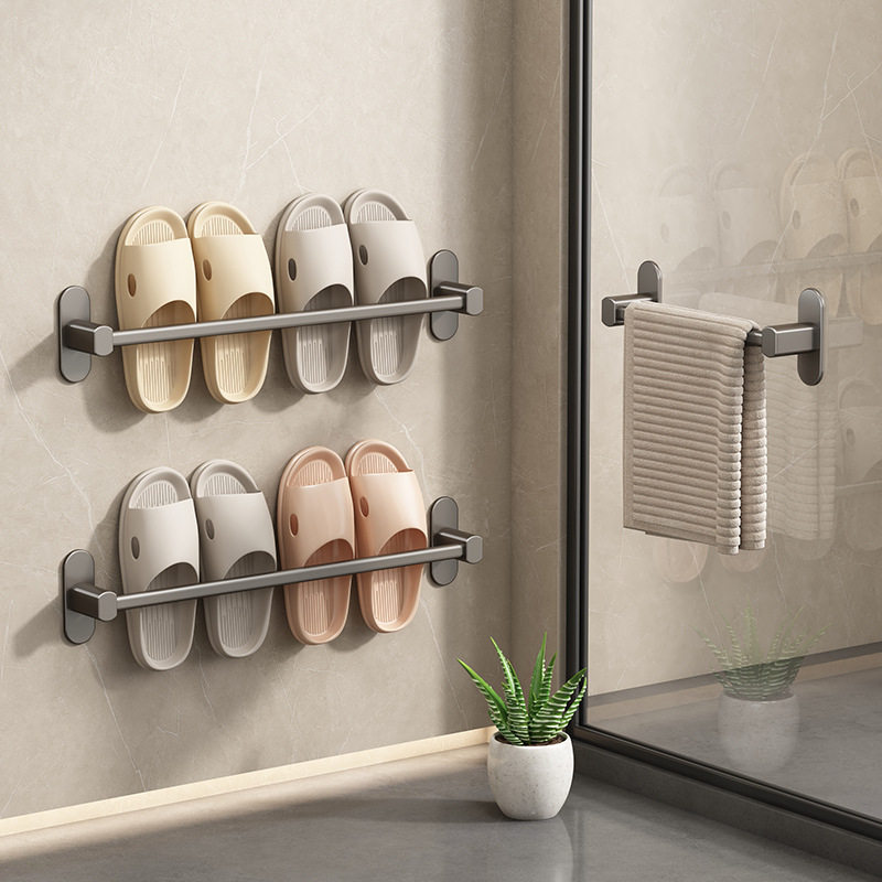 丹乐枪灰太空铝浴室拖鞋架免打孔卫生间置物架厕所壁挂式沥水架