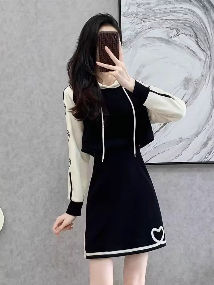LILY MOST时尚洋装女2023年秋季新款小个子修身显瘦连帽包臀裙