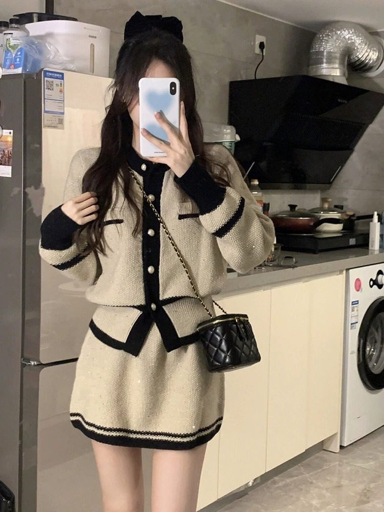 LILY MOST 高级感时尚套装女秋冬网红百搭套头毛衣包臀裙两件套潮