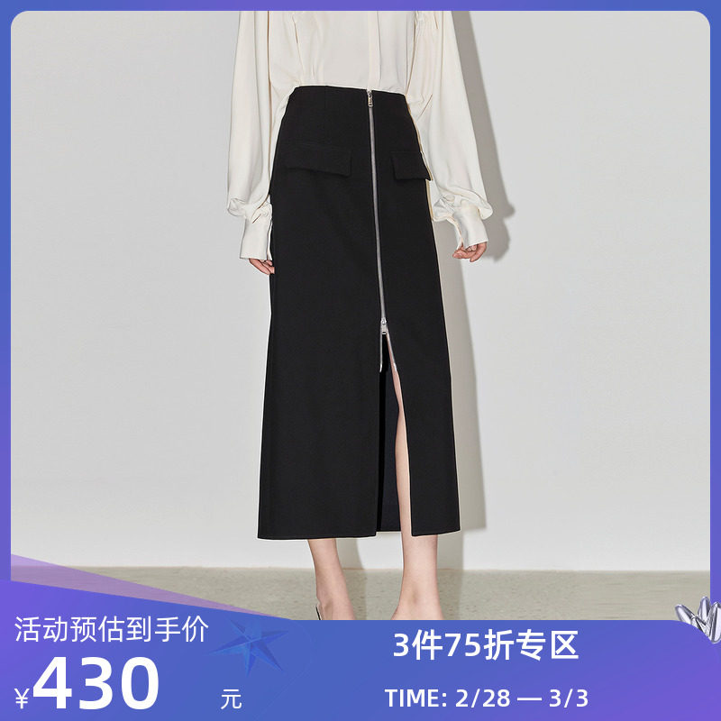 LILY2024春新款女装都市通勤款个性拉链显瘦高腰包臀半身裙小黑裙