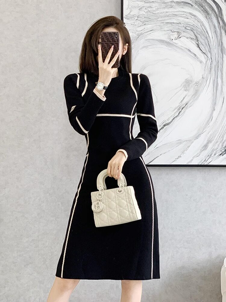 LILY MOST针织连衣裙女秋冬2023新款显瘦紧身内搭长袖包臀毛衣裙