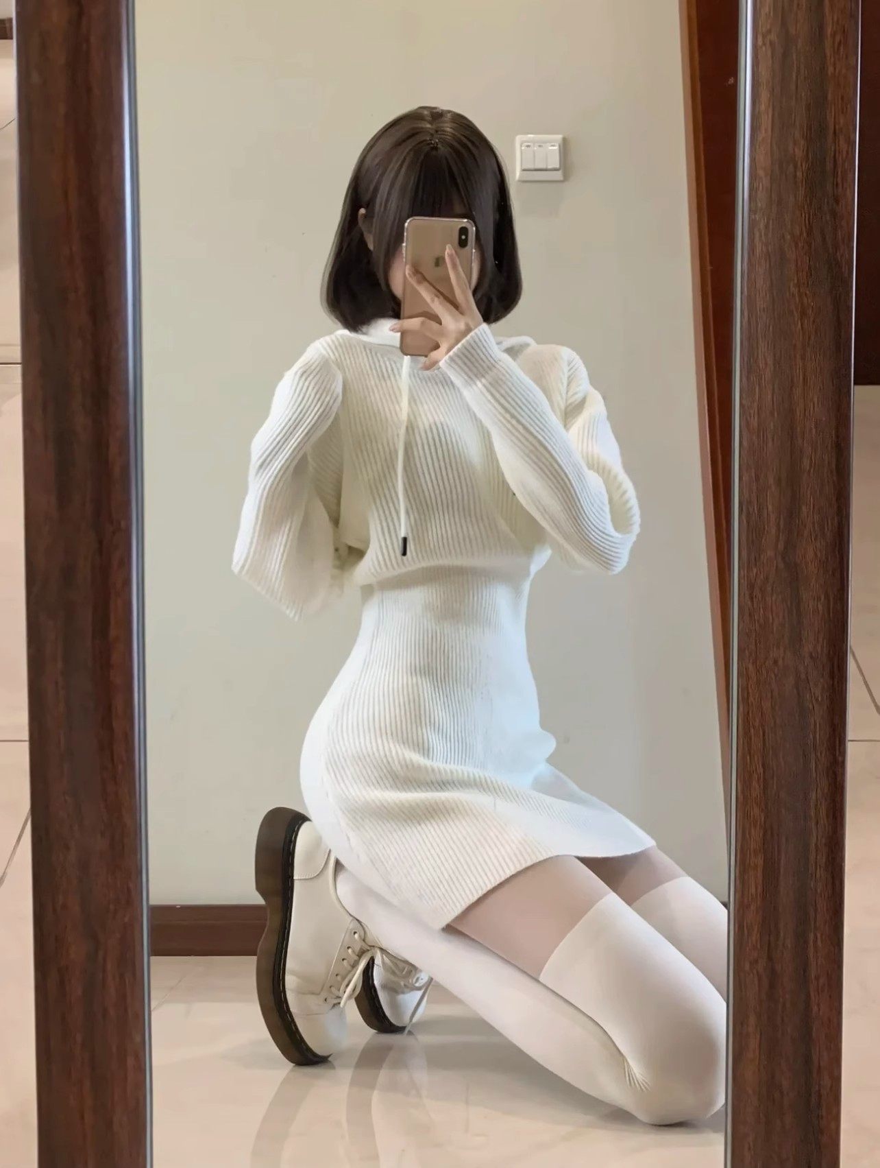 LILY MOST辣妹包臀短裙女御姐风打底毛衣裙子秋冬连帽针织连衣裙
