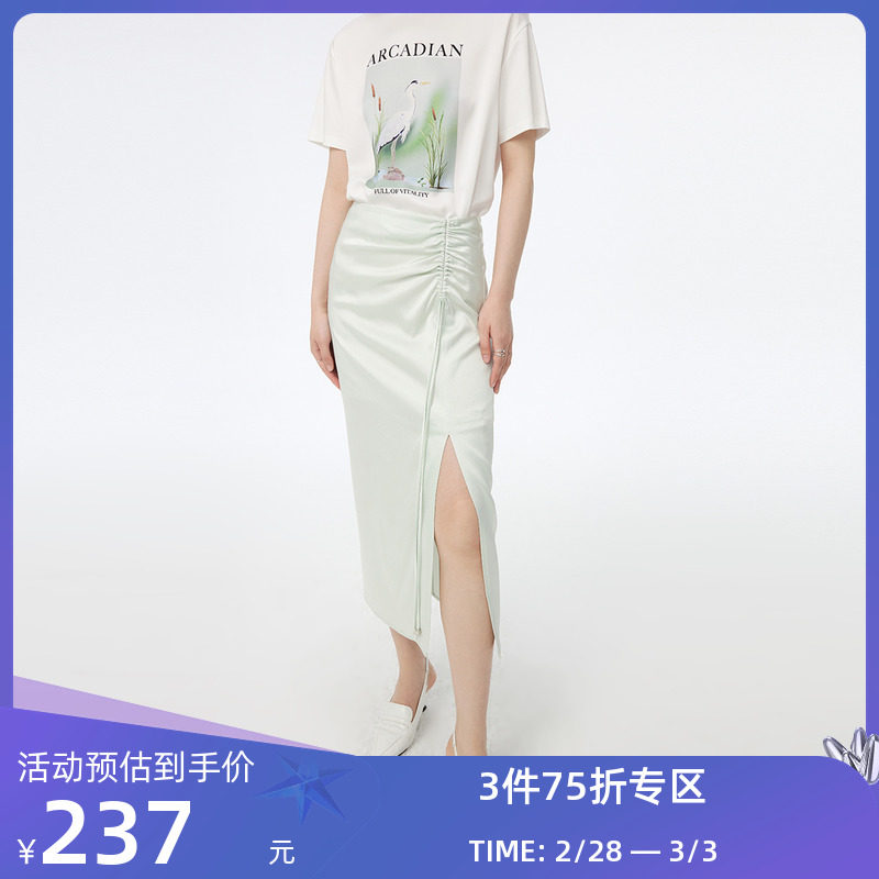 LILY秋新款女装别致不对称时尚抽绳洋气开叉高腰包臀裙半身裙