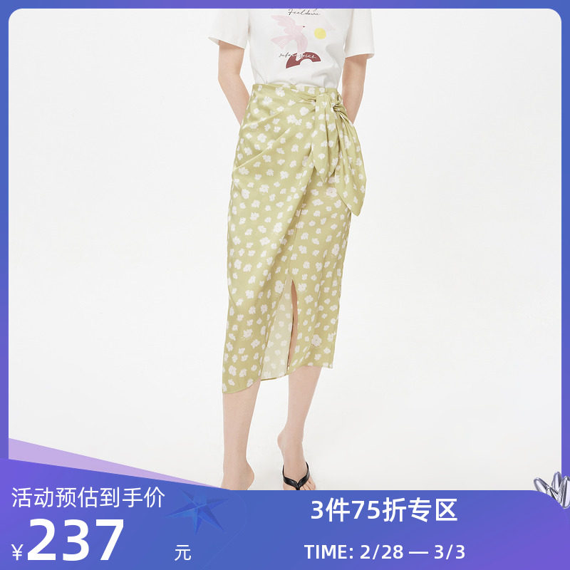 LILY2023夏新款女装浪漫印花时尚通勤优雅一片式高腰款包臀半身裙
