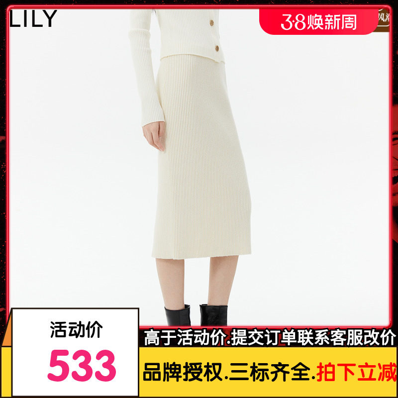【商场同款】LILY2023冬新款女装含绵羊毛通勤款针织半身裙包臀裙
