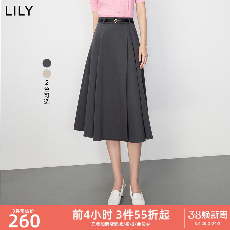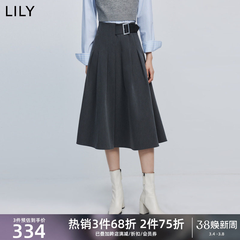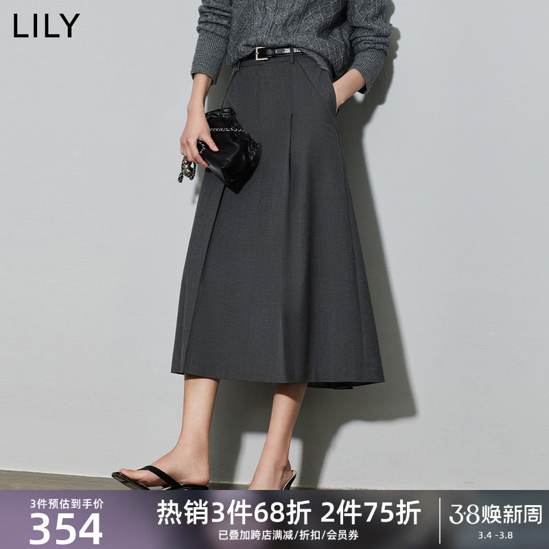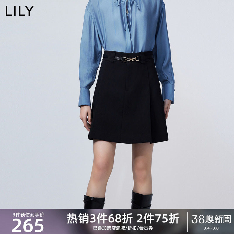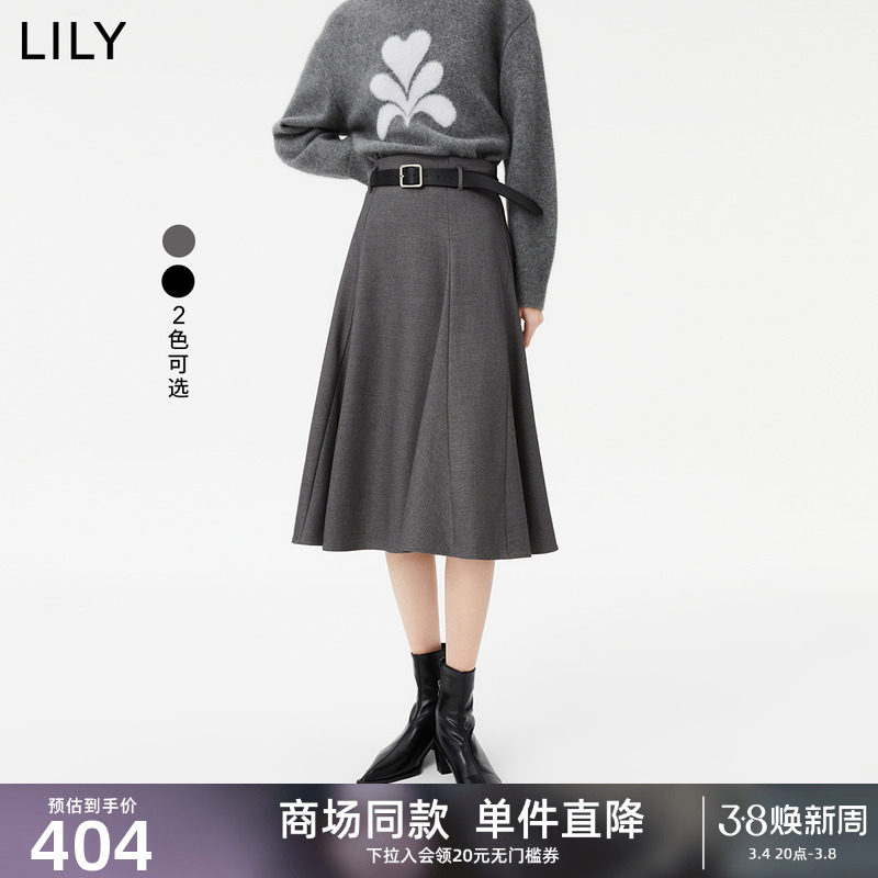 【专柜甄选】LILY新款女装含绵羊毛时尚通勤气质高腰半身裙