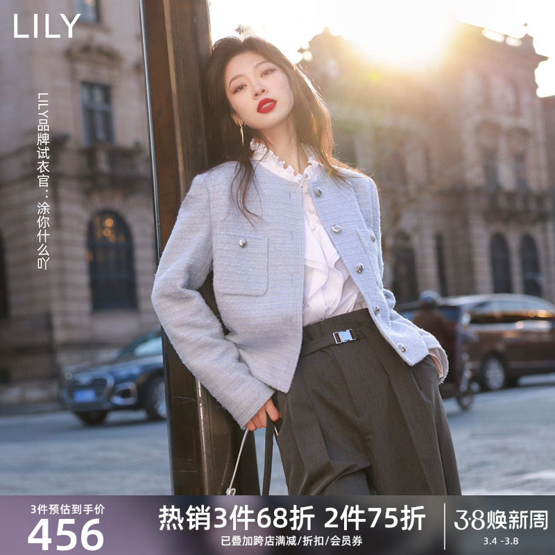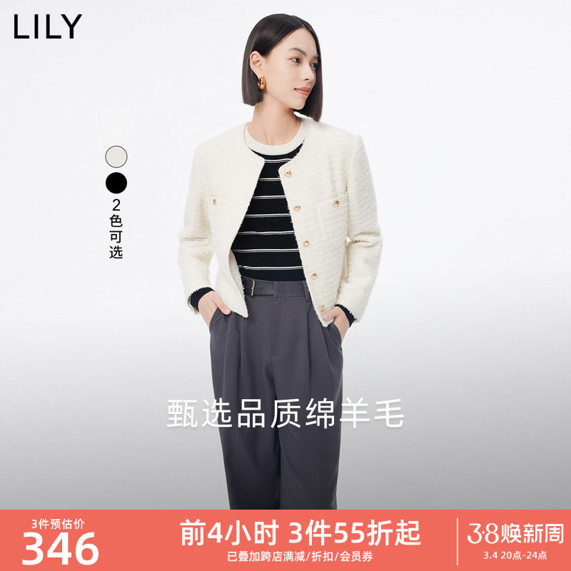 LILY新款女装绵羊毛复古气质小香风优雅通勤短外套小个子女