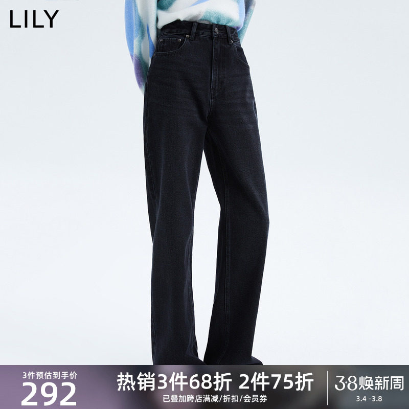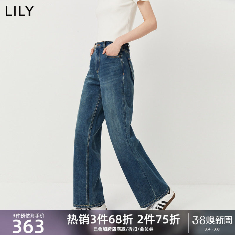 【商场同款】LILY新款女装复古时尚休闲显瘦高腰阔腿牛仔裤