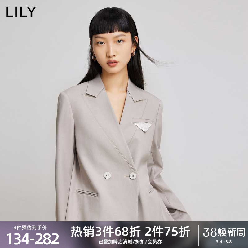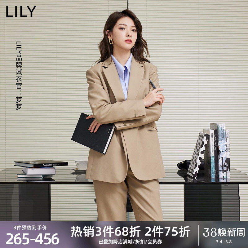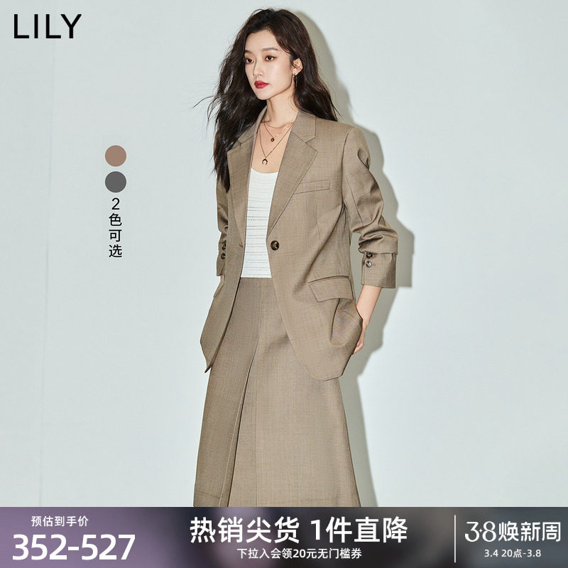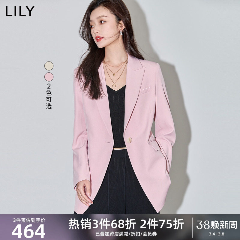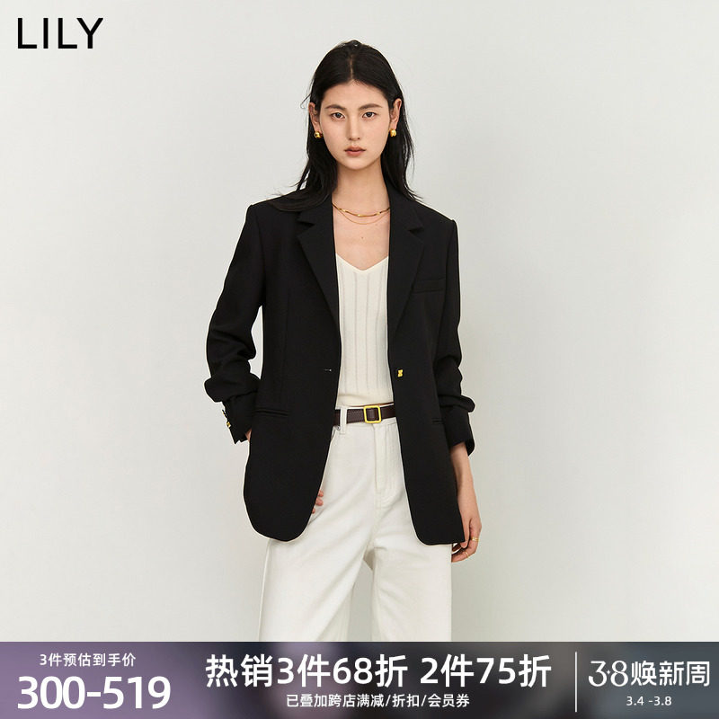 LILY2024春新款女装商务通勤款复古简洁一粒扣职业休闲西装外套女